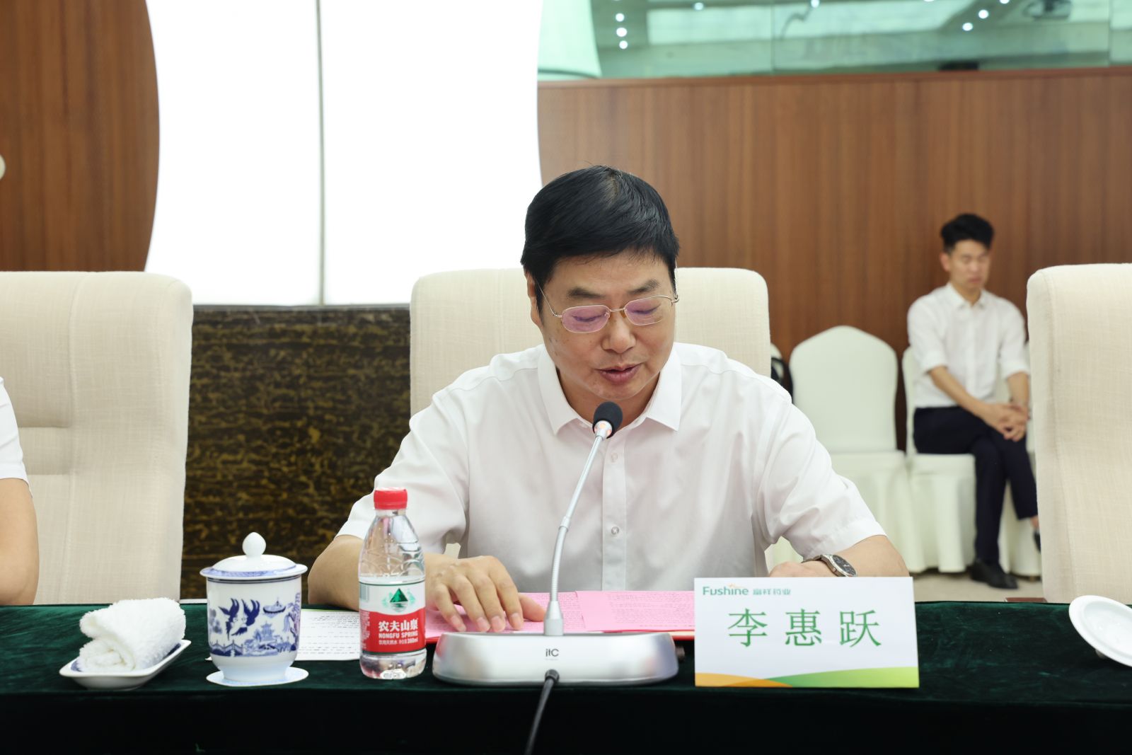 ▲富祥藥業(yè)副董事長李惠躍講話